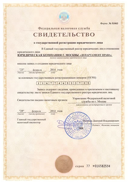 Официальная регистрация гарантирует строгое соблюдение требований законов РФ
